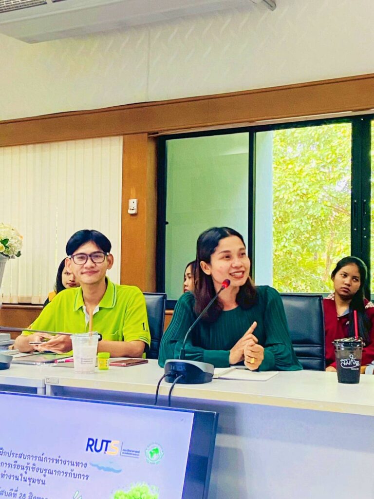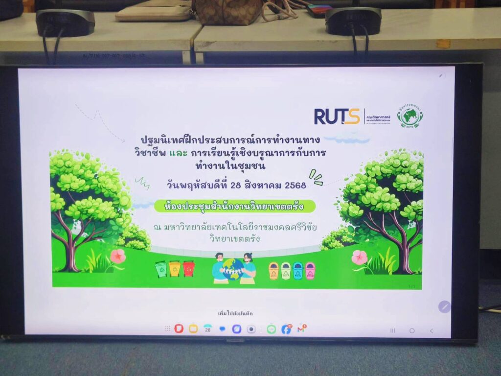 วันที่ 28 สิงหาคม 2568 รองศาสตราจารย์ ดร.ลักษมี วิทยา รองผู้อำนวยการสถาบันวิจัยและพัฒนา มอบหมายให้ นางสาววารีรัตน์ ขุนทอง และนายรุ่งโรจน์ นวนศรี เจ้าหน้าที่ศูนย์ประสานงาน อพ.สธ.-มทร.ศรีวิชัย เข้าร่วมปฐมนิเทศฝึกประสบการณ์การทำงานทางวิชาชีพและการเรียนรู้เชิงบูรณาการกับการทำงานในชุมชน ของนักศึกษาชั้นปีที่ 4 สาขาวิชาการจัดการทรัพยากรและสิ่งแวดล้อม ณ ห้องประชุมสำนักวิทยาเขตตรัง มหาวิทยาลัยเทคโนโลยีราชมงคลศรีวิชัย วิทยาเขตตรัง สืบเนื่องด้วยคณะวิทยาศาสตร์และเทคโนโลยีการประมงมหาวิทยาลัยเทคโนโลยีราชมงคลศรีวิชัย วิทยาเขตตรัง ได้จัดการเรียนการสอนรูปแบบการฝึกประสบการณ์วิชาชีพ (WIL) ในรายวิชาการเรียนรู้เชิงบูรณาการกับการทำงานในชุมชน โดยเน้นให้นักศึกษานำความรู้ทั้งทฤษฏีและปฏิบัติที่ได้ศึกษามาไปประยุกต์ใช้และปฏิบัติงานจริงในสถานประกอบการ ซึ่งคณะฯ พิจารณาแล้วเห็นว่า ศูนย์ประสานงาน อพ.สธ.-มทร.ศรีวิชัย เป็นแหล่งที่จะเพิ่มพูนความรู้ ทักษะ และประสบการณ์ให้แก่นักศึกษาได้เป็นอย่างดี จึงส่งนักศึกษา จำนวน 3 ราย เข้าฝึกงานตั้งแต่วันที่ 1 กันยายน – 224 ตุลาคม 2568