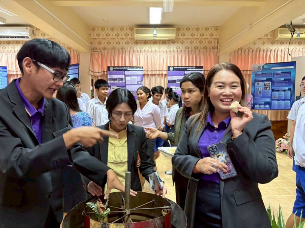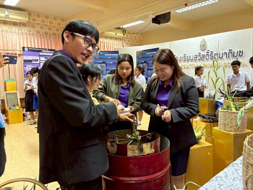 🌟ด้วย โรงเรียนสวัสดิ์รัตนาภิมุข อำเภอนาโยง จังหวัดตรัง ดำเนินงานสวนพฤกษศาสตร์โรงเรียน สนองพระราชดำริในโครงการอนุรักษ์พันธุกรรมพืชอันเนื่องมาจากพระราชดำริสมเด็จพระเทพรัตนราชสุดาฯ สยามบรมราชกุมารี (อพ.สธ.) นักเรียนได้ดำเนินงาน 3 สาระการเรียนรู้ จัดทำนวัตกรรมในสาระการเรียนรู้ ประโยชน์แท้แก่มหาชน โดยมีการนำเสนอผลงานนักเรียน ชั้น ม.5 ที่บูรณาการกับรายวิชาชีววิทยา โดยใช้พืชศึกษา “คงหวาน” อาทิเช่น การทำรองเท้าเพื่อสุขภาพ ถ่านไบโอชา เตาเผาข้าวหลาม สวนผักแนวตั้งระบบน้ำอัตโนมัติและการออกแบบลวดลายจากเนื้อเยื่อใบคงหวาน สรรค์สร้างเป็นลายลูกปัดมโนราห์ ร่วมรับฟังและให้ข้อเสนอแนะเพื่อเป็นแนวทางการดำเนินงานของโรงเรียนต่อไป