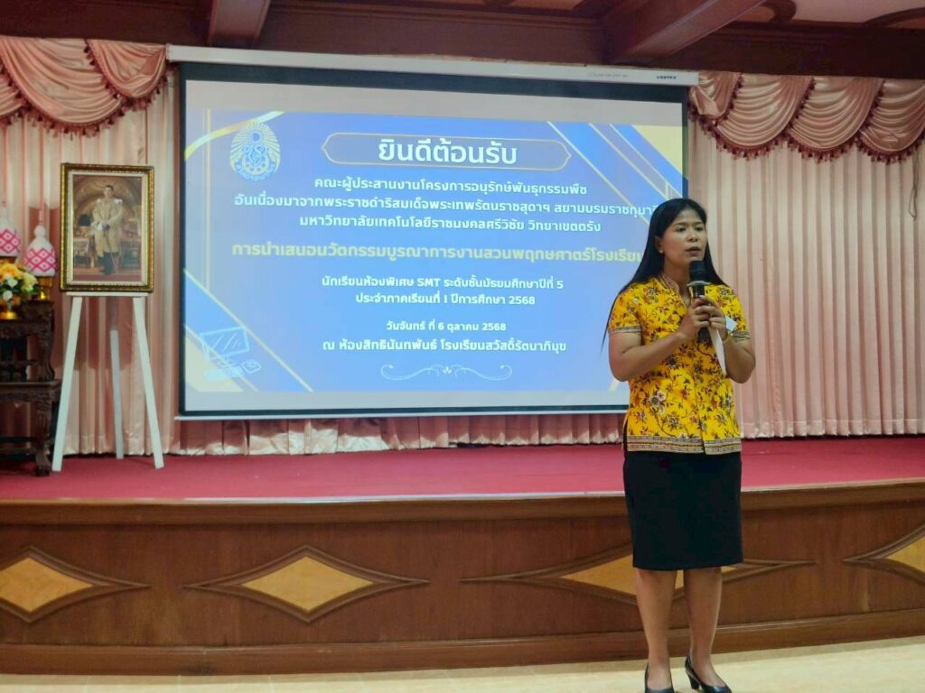 วันที่ 6 ตุลาคม 2568 ศูนย์ประสานงาน โครงการ อพ.สธ.ภาคใต้ฝั่งอันดามัน (อพ.สธ.-มทร.ศรีวิชัย) นำโดยรองศาสตราจารย์ ดร.ลักษมี วิทยา รองผู้อำนวยการสถาบันวิจัยและพัฒนา ดร.นิภาพร ช่วยธานี วิทยากรศูย์ประสานงาน พร้อมด้วยนางสาววารีรัตน์ ขุนทอง และนายรุ่งโรจน์ นวนศรี เจ้าหน้าที่ศูนย์ประสานงาน โครงการ อพ.สธ.-มทร.ศรีวิชัย เข้านิเทศติดตามผลการดำเนินงานงานสวนพฤกษศาสตร์โรงเรียน โรงเรียนสวัสดิ์รัตนาภิมุข อำเภอนาโยง จังหวัดตรัง