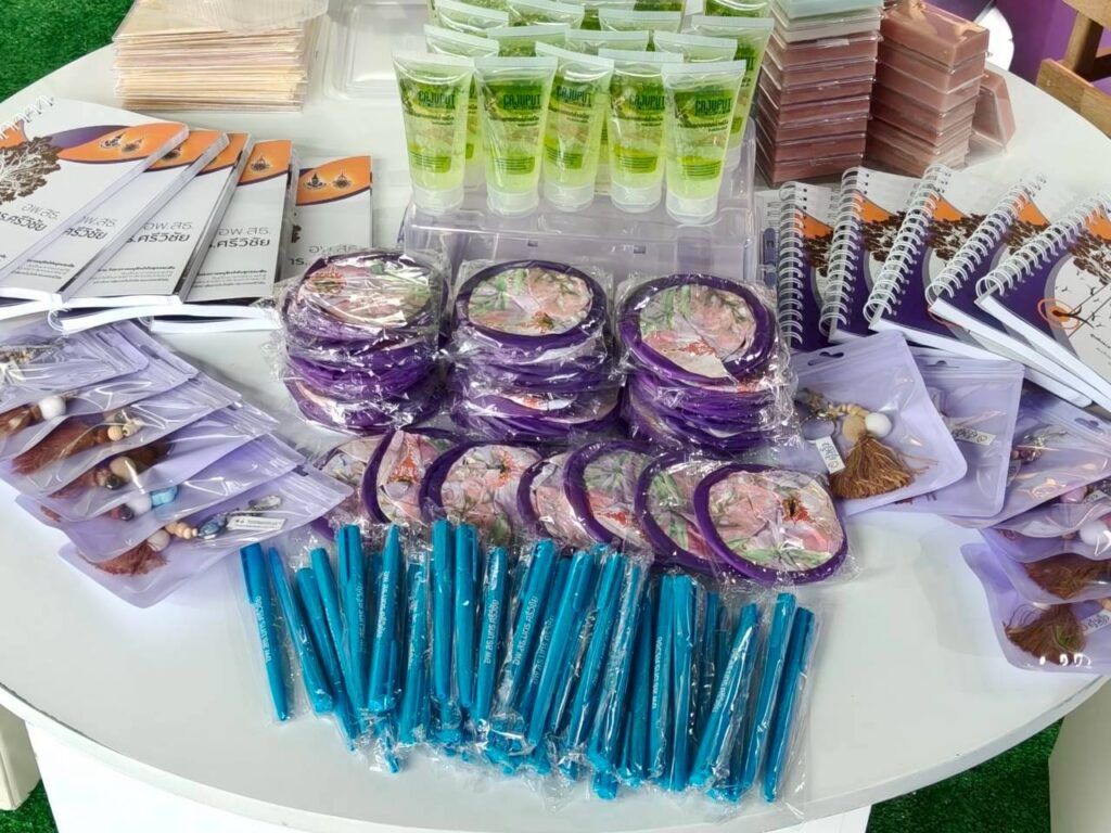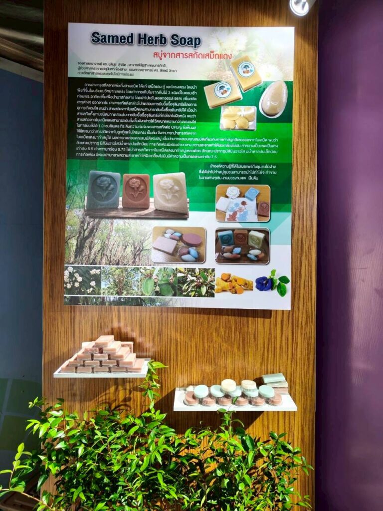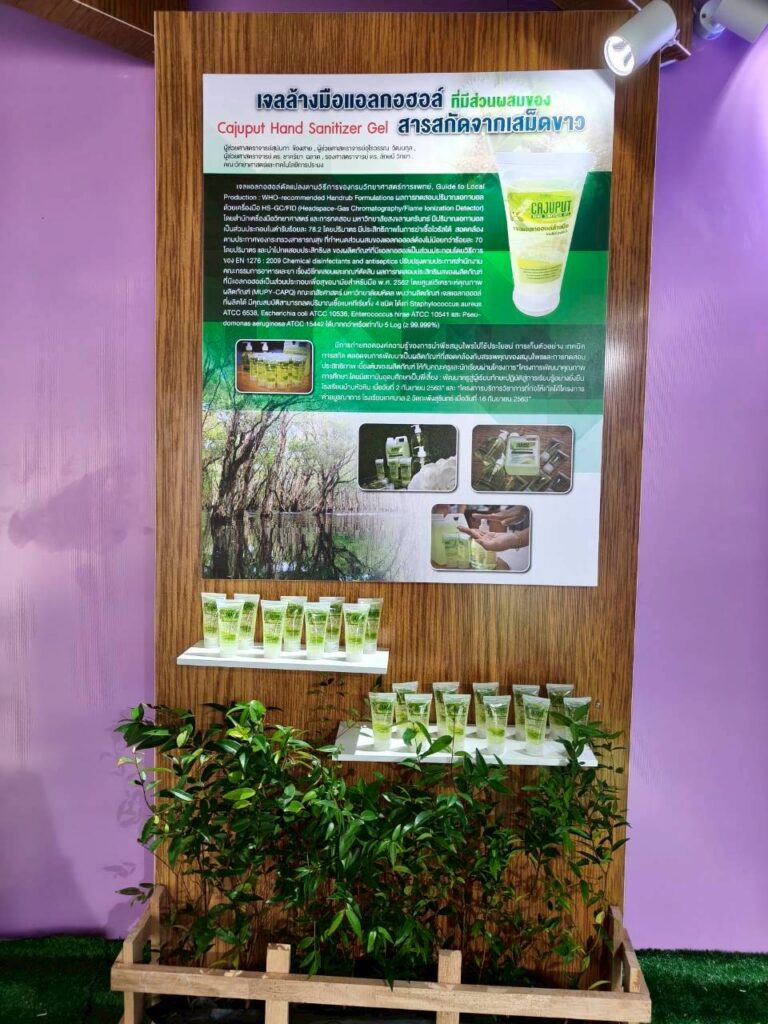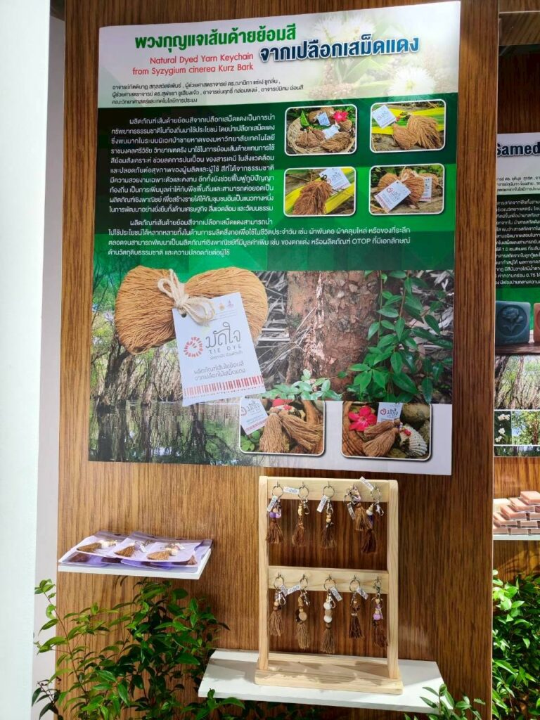 ในการเข้าร่วมครั้งนี้ ศูนย์ประสานงานฯ ได้นำเสนอผลงานนิทรรศการภายใต้หัวข้อ “พืชเสม็ด ทรัพยากรท้องถิ่น สู่การพัฒนาอย่างยั่งยืน” เพื่อเผยแพร่ความรู้และนวัตกรรมจากพืชเสม็ด ซึ่งเป็นทรัพยากรธรรมชาติที่มีศักยภาพของท้องถิ่นภาคใต้ โดยจัดแสดงผลิตภัณฑ์และผลงานวิจัยที่ต่อยอดจากพืชเสม็ด อาทิ ผลิตภัณฑ์ผ้ามัดย้อมจากต้นเสม็ดแดงและต้นเสม็ดขาว โดยใช้ส่วนเปลือกของต้นเสม็ดและพืชไม้ฝาดมาย้อมผ้า ได้สีสันหลากหลาย เช่น สีแดง สีชมพู สีเหลือง และสีเขียว ผลงานโดย รศ.ดร.ชุตินุช สุจริต น้ำพริกคั่วแห้งเห็ดเสม็ด ผลิตจากเห็ดเสม็ดซึ่งเป็นอาหารพื้นถิ่นหายากของภาคใต้ มีคุณค่าทางโภชนาการสูง ผลงานโดย รศ.ชมพูนุช โสมาลีย์ พวงกุญแจเส้นด้ายย้อมสีจากเปลือกเสม็ดแดง มีเอกลักษณ์เฉพาะตัว สามารถต่อยอดเป็นของที่ระลึกได้หลากหลาย ผลงานโดย อาจารย์กัตตินาฏ สกุลสวัสดิพันธ์ สบู่จากสารสกัดเสม็ดแดง ช่วยขจัดสิ่งสกปรกและแบคทีเรีย ผลงานโดย รศ.ดร.ชุตินุช สุจริต และเจลล้างมือแอลกอฮอล์ผสมสารสกัดเสม็ดขาว ให้ความชุ่มชื้นกับผิว พร้อมคุณสมบัติฆ่าเชื้อโรค ผลงานโดย ผศ.สุนันทา ข้องสาย