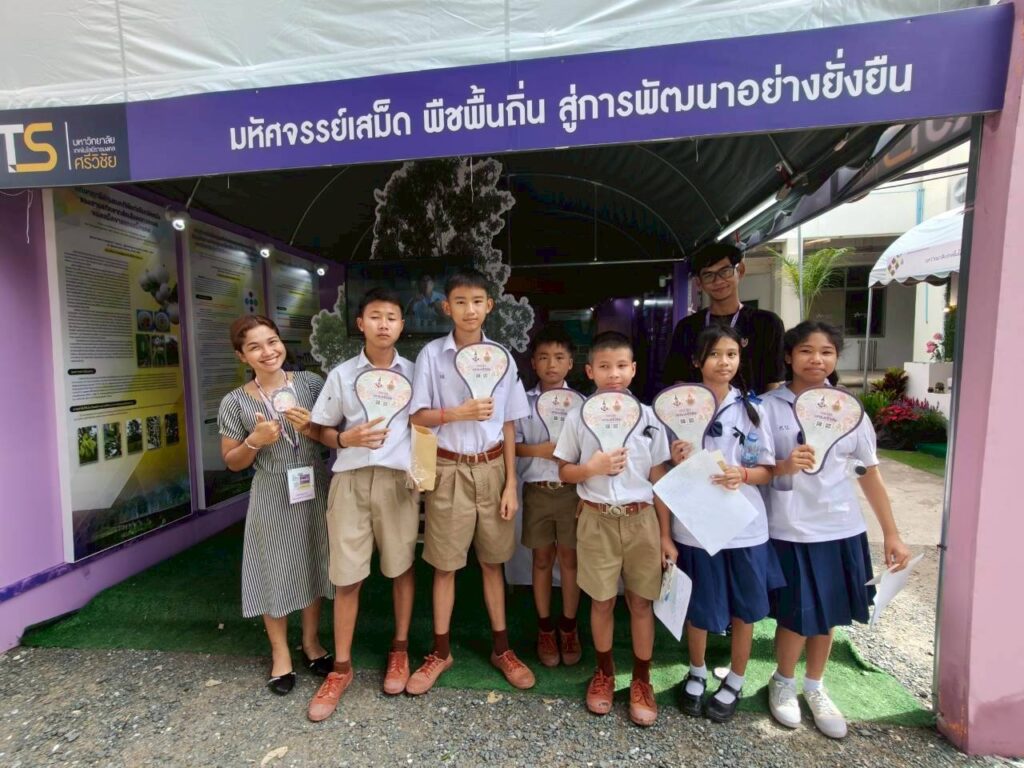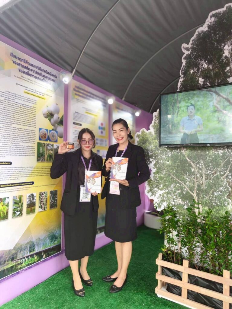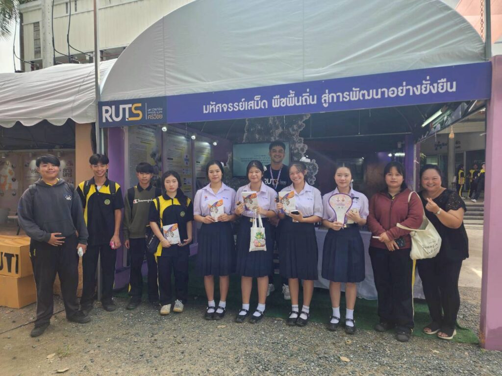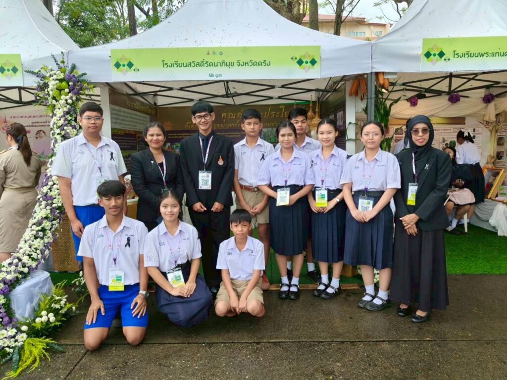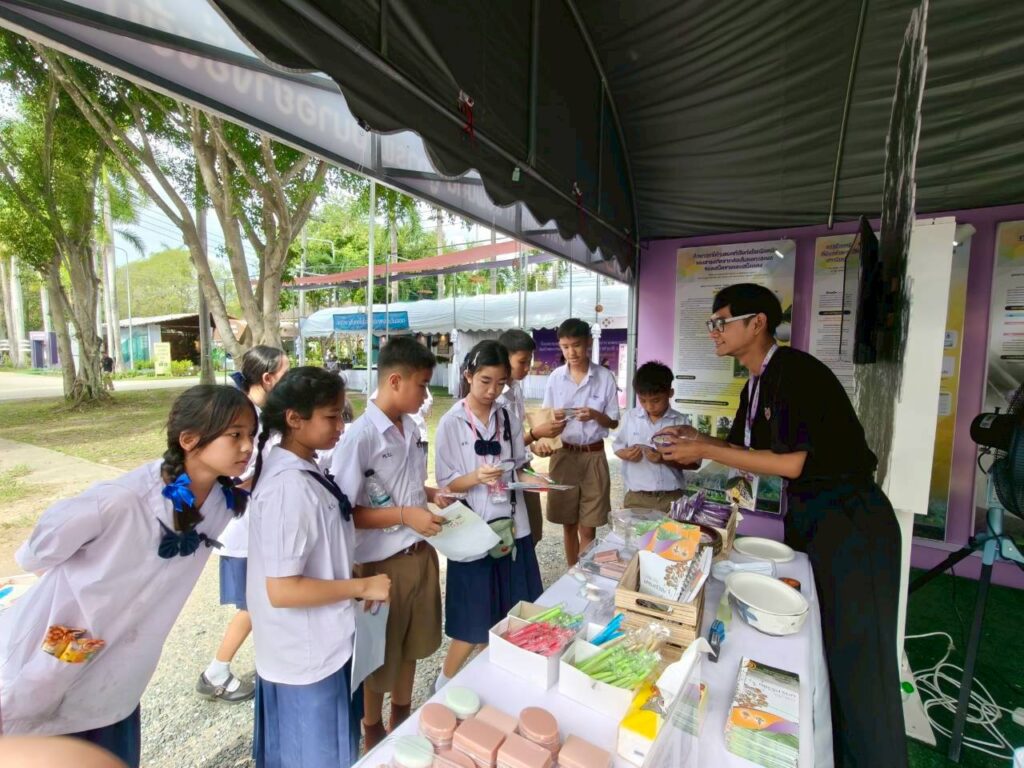 นอกจากนี้ ศูนย์ประสานงานฯ ยังได้สนับสนุน สมาชิกสวนพฤกษศาสตร์โรงเรียน เข้าร่วมจัดนิทรรศการและนำเสนอผลงานทางวิชาการของผู้เรียนจำนวน 5 ผลงาน ได้แก่ ตู้อบพันธุ์ไม้ 360 องศา จากรูปร่างของฝักข้าวโพดหวานตามขวาง (Zea mays L.) โรงเรียนสวัสดิ์รัตนาภิมุข จังหวัดตรัง รองเท้าสุขภาพจากเปลือกหุ้มฝักข้าวโพดหวาน (Zea mays L.) โรงเรียนสวัสดิ์รัตนาภิมุข จังหวัดตรัง เครื่องร่อนแป้งอเนกประสงค์ชีวกลเลียนแบบการก้าวเดินของขามดแดง โรงเรียนวิเชียรมาตุ จังหวัดตรัง เม็ดสีเลคธรรมชาติจากสารสกัดโครงเคลง โรงเรียนวิเชียรมาตุ จังหวัดตรัง และใบพัดเครื่องปั่นอาหารจากรูปลักษณ์ใบเหงือกปลาหมอ โรงเรียนเฉลิมพระเกียรติฯ จังหวัดภูเก็ต ทั้งนี้ หน่วยงานภายใต้ความรับผิดชอบของศูนย์ประสานงานฯ ยังได้เข้าร่วมจัดนิทรรศการเพิ่มเติมอีก 2 หน่วยงาน ได้แก่ โรงเรียนบ้านทุ่งศาลา จังหวัดตรัง และองค์การบริหารส่วนตำบลไม้ขาว จังหวัดภูเก็ต การเข้าร่วมในครั้งนี้สะท้อนให้เห็นถึงความมุ่งมั่นของ ศูนย์ประสานงาน อพ.สธ.-มหาวิทยาลัยเทคโนโลยีราชมงคลศรีวิชัย ในการส่งเสริมความรู้ด้านการอนุรักษ์ทรัพยากรธรรมชาติ การพัฒนาองค์ความรู้จากภูมิปัญญาท้องถิ่น และการสนับสนุนโรงเรียนรวมถึงองค์กรปกครองส่วนท้องถิ่นให้สามารถพัฒนาทรัพยากรมนุษย์และทรัพยากรธรรมชาติของประเทศอย่างยั่งยืนต่อไป