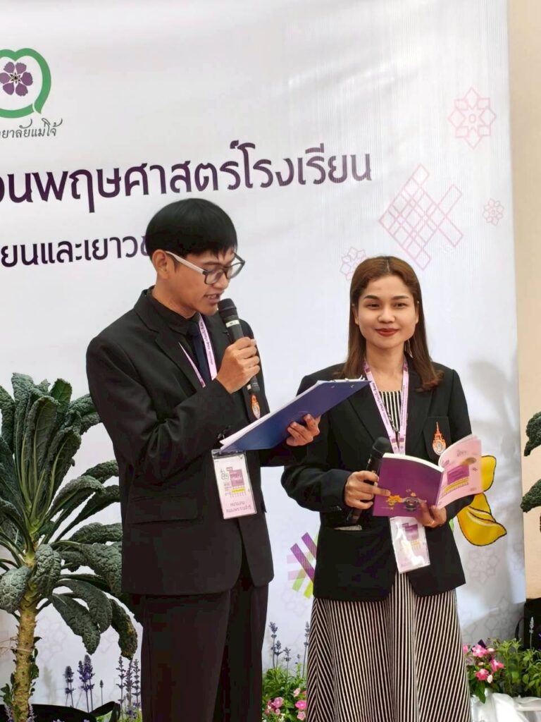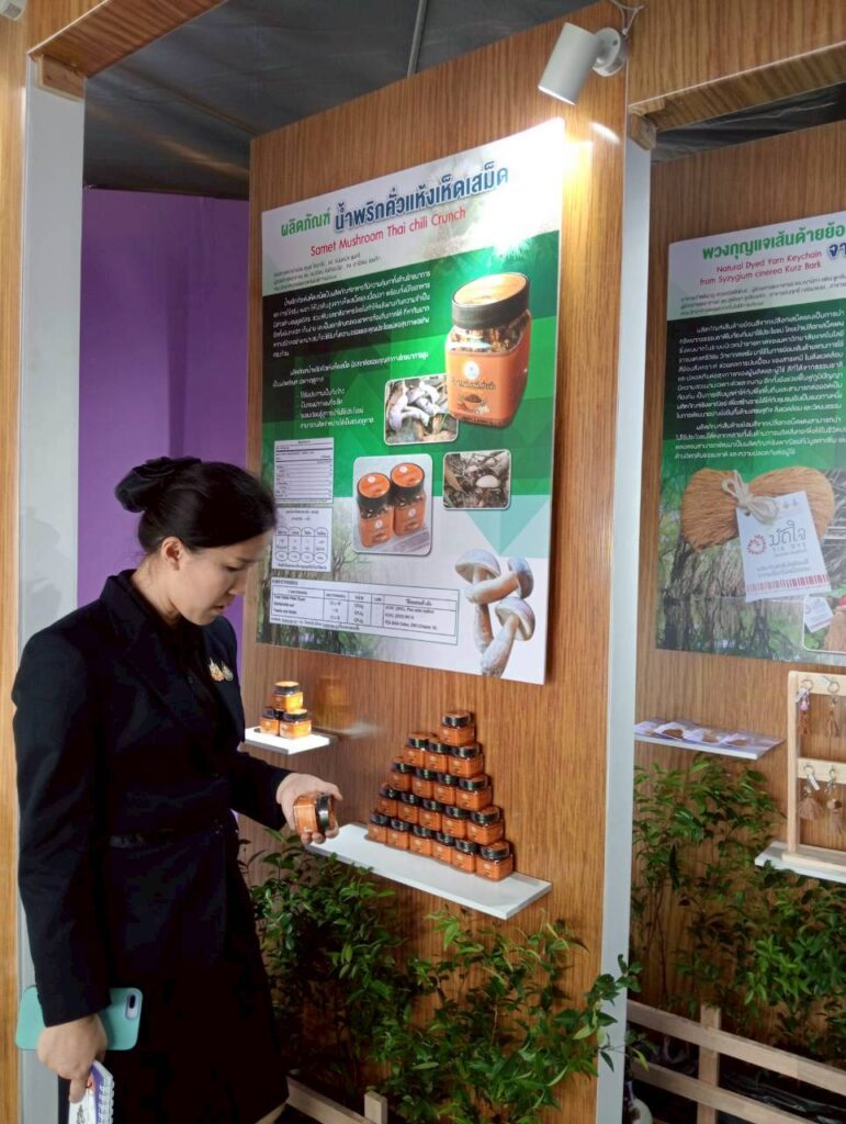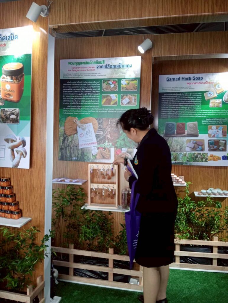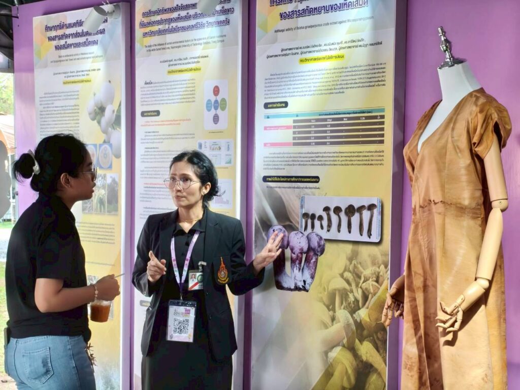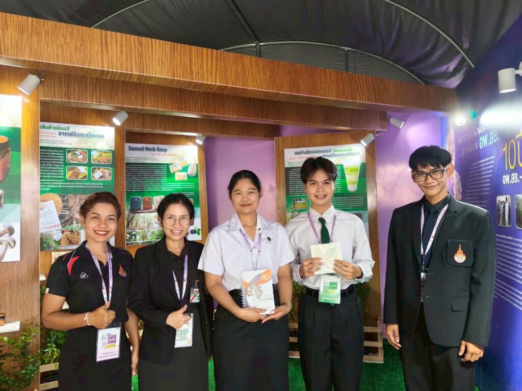 นอกจากนี้ ศูนย์ประสานงานฯ ยังได้สนับสนุน สมาชิกสวนพฤกษศาสตร์โรงเรียน เข้าร่วมจัดนิทรรศการและนำเสนอผลงานทางวิชาการของผู้เรียนจำนวน 5 ผลงาน ได้แก่ ตู้อบพันธุ์ไม้ 360 องศา จากรูปร่างของฝักข้าวโพดหวานตามขวาง (Zea mays L.) โรงเรียนสวัสดิ์รัตนาภิมุข จังหวัดตรัง รองเท้าสุขภาพจากเปลือกหุ้มฝักข้าวโพดหวาน (Zea mays L.) โรงเรียนสวัสดิ์รัตนาภิมุข จังหวัดตรัง เครื่องร่อนแป้งอเนกประสงค์ชีวกลเลียนแบบการก้าวเดินของขามดแดง โรงเรียนวิเชียรมาตุ จังหวัดตรัง เม็ดสีเลคธรรมชาติจากสารสกัดโครงเคลง โรงเรียนวิเชียรมาตุ จังหวัดตรัง และใบพัดเครื่องปั่นอาหารจากรูปลักษณ์ใบเหงือกปลาหมอ โรงเรียนเฉลิมพระเกียรติฯ จังหวัดภูเก็ต ทั้งนี้ หน่วยงานภายใต้ความรับผิดชอบของศูนย์ประสานงานฯ ยังได้เข้าร่วมจัดนิทรรศการเพิ่มเติมอีก 2 หน่วยงาน ได้แก่ โรงเรียนบ้านทุ่งศาลา จังหวัดตรัง และองค์การบริหารส่วนตำบลไม้ขาว จังหวัดภูเก็ต การเข้าร่วมในครั้งนี้สะท้อนให้เห็นถึงความมุ่งมั่นของ ศูนย์ประสานงาน อพ.สธ.-มหาวิทยาลัยเทคโนโลยีราชมงคลศรีวิชัย ในการส่งเสริมความรู้ด้านการอนุรักษ์ทรัพยากรธรรมชาติ การพัฒนาองค์ความรู้จากภูมิปัญญาท้องถิ่น และการสนับสนุนโรงเรียนรวมถึงองค์กรปกครองส่วนท้องถิ่นให้สามารถพัฒนาทรัพยากรมนุษย์และทรัพยากรธรรมชาติของประเทศอย่างยั่งยืนต่อไป