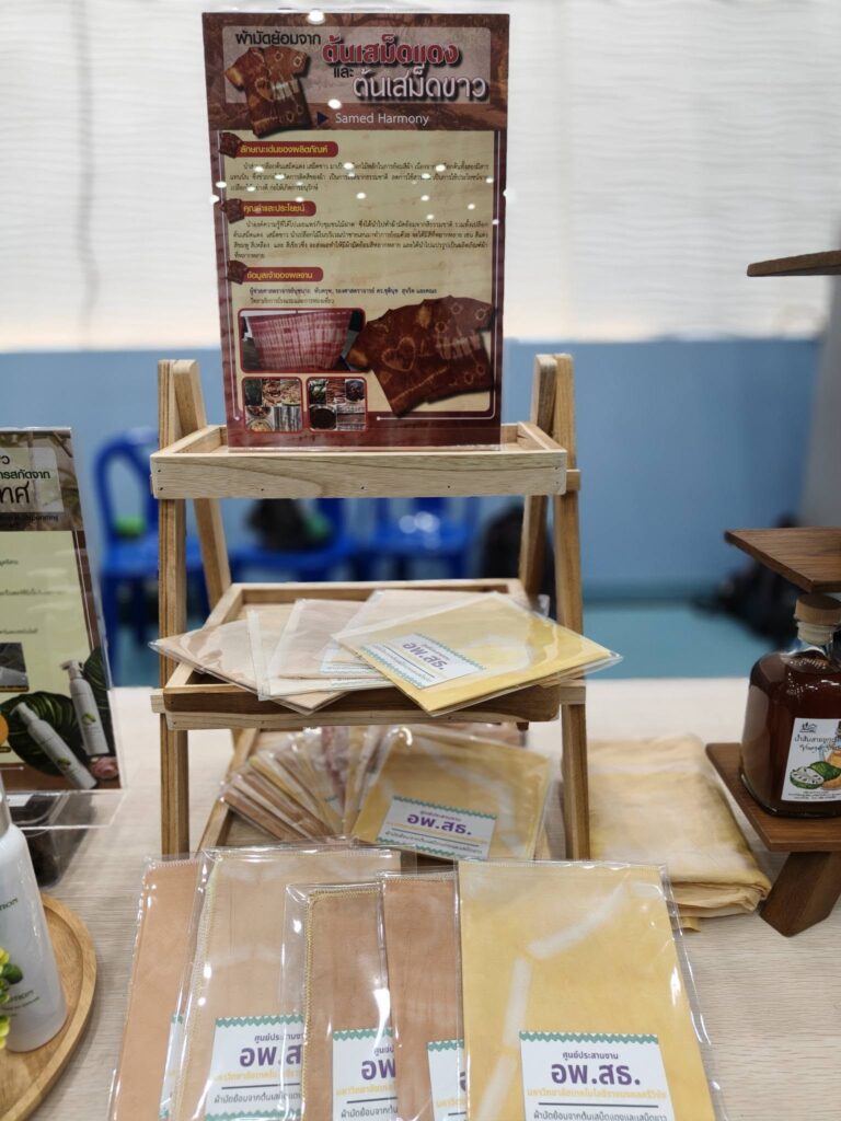 7. โครงการการใช้ประโยชน์สารให้สีจากเปลือกเสม็ดแดงเพื่อย้อมสีเส้นไหม โดย : อาจารย์กัตตินาฏ สกุลสวัสดิพันธ์ และคณะ สังกัดคณะวิทยาศาสตร์และเทคโนโลยีการประมง