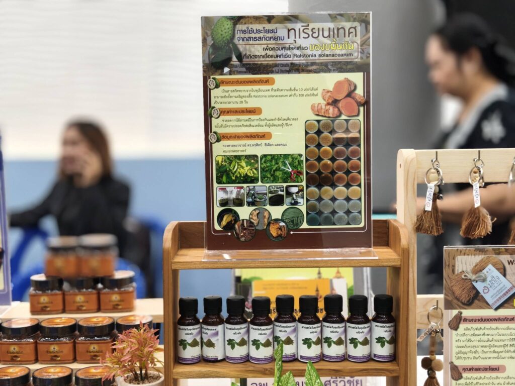 4. โครงการการใช้ประโยชน์จากสารสกัดหยาบทุเรียนเทศเพื่อควบคุมโรคเหี่ยวของขมิ้นชันที่เกิดจากเชื้อแบคทีเรีย Ralstonia solanacearum โดย : รศ.ดร.พรศิลป์ สีเผือก และคณะ สังกัดคณะเกษตรศาสตร์