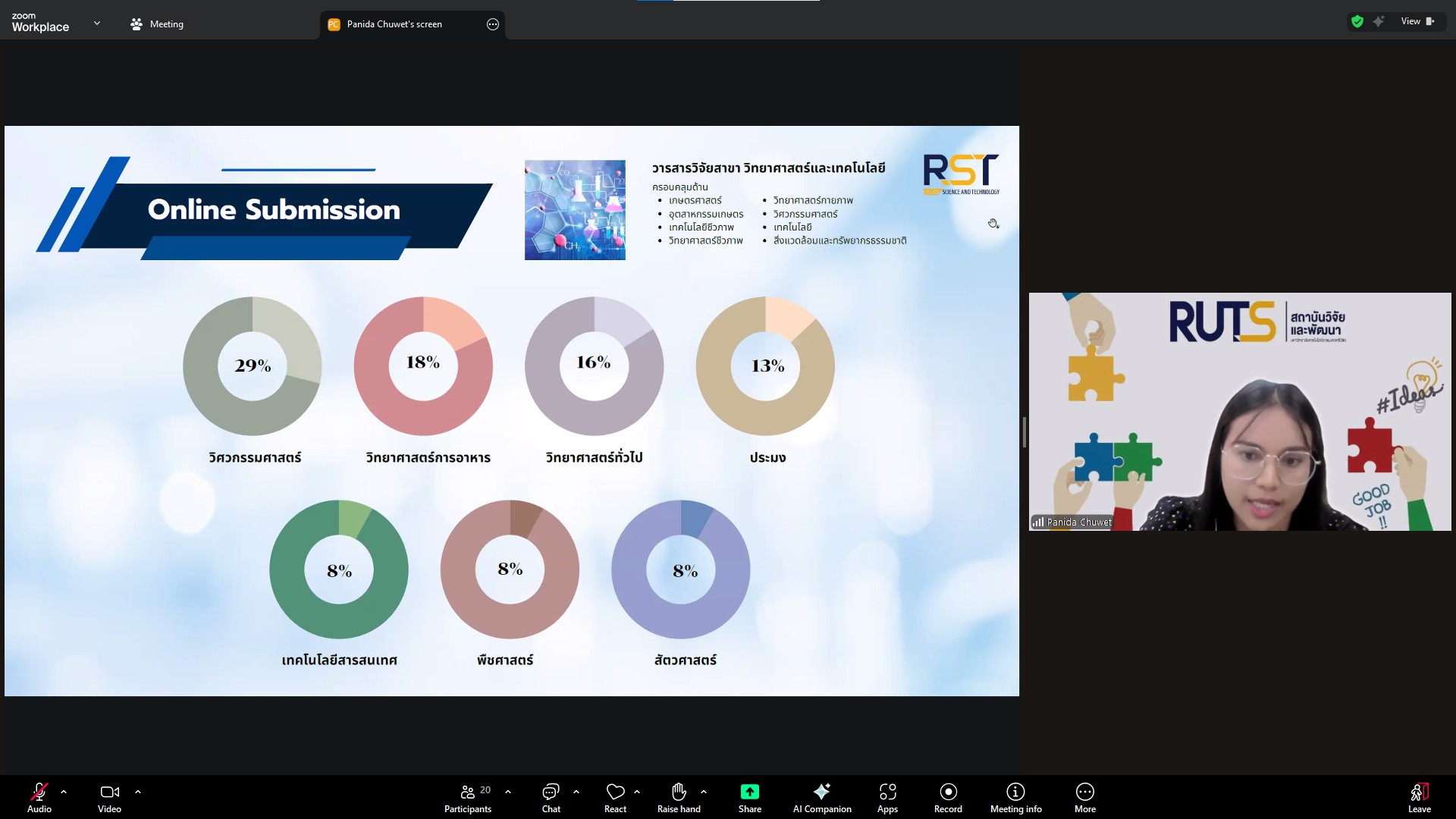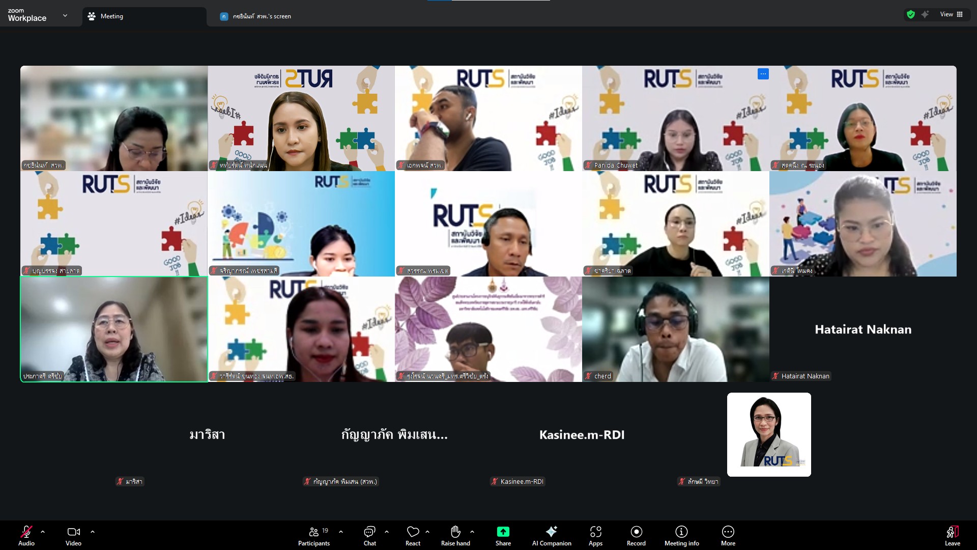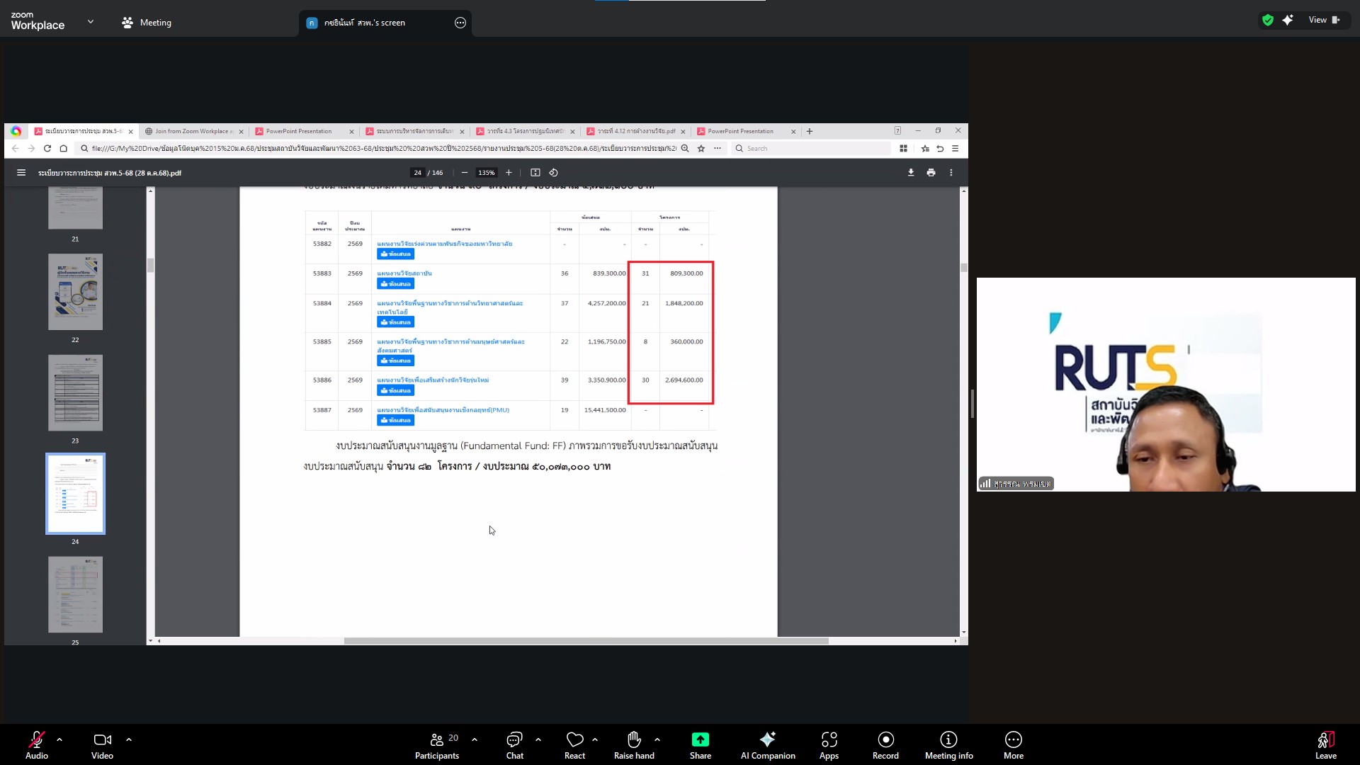 วันที่ 28 ตุลาคม 2568 สถาบันวิจัยและพัฒนา มทร.ศรีวิชัย นำโดย ผศ.ประภาศรี ศรีชัย ผู้อำนวยการสถาบันวิจัยและพัฒนา ผศ.ดร.สุดคนึง ณ ระนอง ผศ.ดร.ชาคริยา ฉลาด รศ.ดร.ลักษมี วิทยา รองผู้อำนวยการสถาบันวิจัยและพัฒนา พร้อมด้วยเจ้าหน้าที่ของสถาบันวิจัยและพัฒนา ประชุมตามระเบียบวาระการประชุม สถาบันวิจัยและพัฒนา มทร.ศรีวิชัย ครั้งที่ 5/2568 เพื่อติดตามการดำเนินงานด้านวิจัยของแต่ละฝ่ายงาน รวมถึงการวางแผนดำเนินโครงการของสถาบันวิจัยและพัฒนา ผ่านสื่ออิเล็กทรอนิกส์แอปพลิเคชั่น ZOOM Cloud Meetings