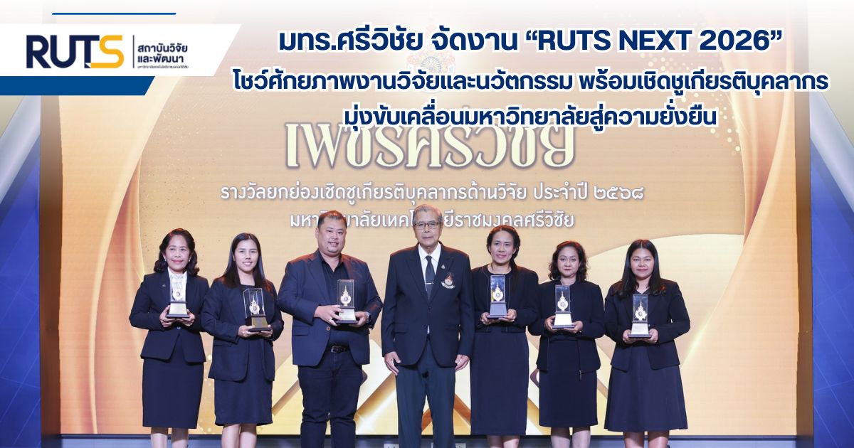 มหาวิทยาลัยเทคโนโลยีราชมงคลศรีวิชัย เดินหน้ายกระดับพันธกิจด้านการวิจัยและนวัตกรรม จัดงาน “RUTS NEXT 2026: มหกรรมงานวิจัย นวัตกรรมและเชิดชูเกียรติ” เพื่อส่งเสริมการพัฒนาศักยภาพบุคลากรและเชิดชูเกียรติผู้สร้างสรรค์ผลงานอันเป็นประจักษ์ โดยเป็นการประสานความร่วมมือระหว่างสถาบันวิจัยและพัฒนา สำนักการจัดการนวัตกรรมและถ่ายทอดเทคโนโลยี และกองบริหารงานบุคคล ซึ่งการจัดกิจกรรมในครั้งนี้มีวัตถุประสงค์หลักเพื่อคัดเลือกและมอบรางวัลให้แก่บุคลากรที่มีศักยภาพโดดเด่น มีจรรยาบรรณวิชาชีพ และอุทิศตนเพื่อส่วนรวม เพื่อเป็นขวัญและกำลังใจในการมุ่งมั่นพัฒนาประเทศชาติอย่างต่อเนื่อง โดยได้รับเกียรติจาก ศาสตราจารย์กิตติคุณ ดร.เปี่ยมศักดิ์ เมนะเศวต นายกสภามหาวิทยาลัยเทคโนโลยีราชมงคลศรีวิชัย เป็นประธานในพิธีเปิด